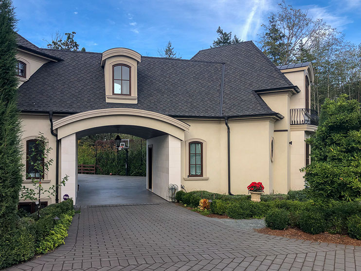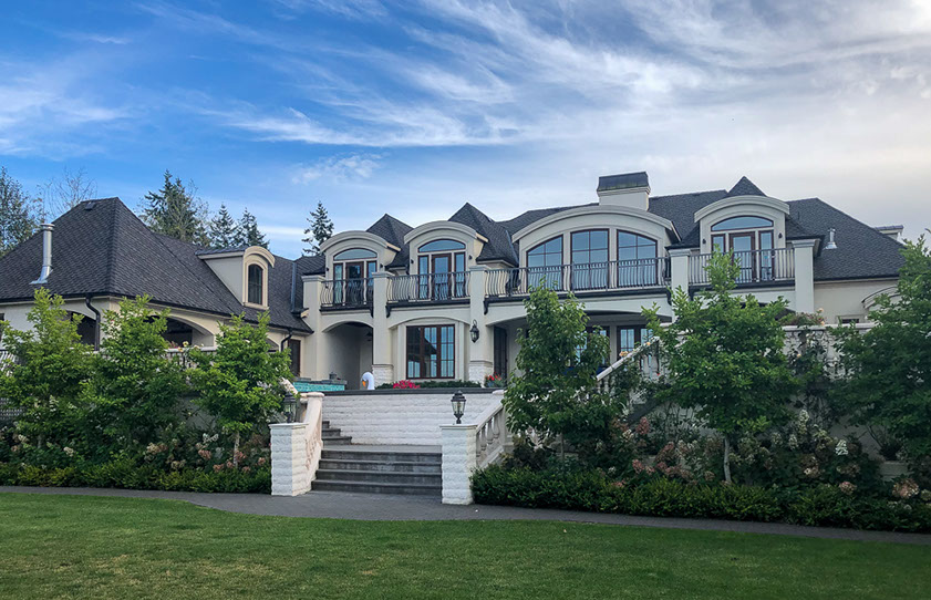 This showpiece home blends modern convenience and all the bells and whistles with very traditional elements. We wanted a very grand look and feel to it with the Port Cochere and hidden car court out of sight. We have all the outdoor living one could desire with the outdoor kitchen, BBQ, outdoor living room, showers and bathroom. The landscaping also enhances grand estate feel with formal style gardens. The interior has a professional style spa, bar and wine tasting rooms to theatres. Nothing was left out.